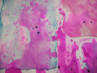 Ensuite j'ai fait des gouttes avec le Dylusions Black Marble et le Glimmer Mist Dragonfly.
